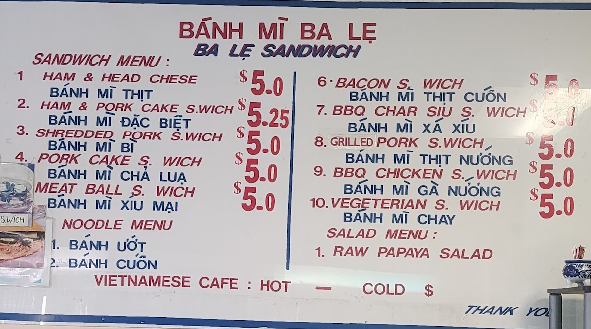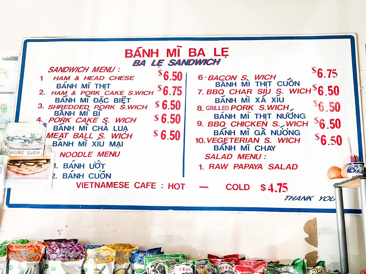 Step into the world of bold flavors and aromatic textures with the Bánh Mì Ba Lẹ Menu, where Vietnamese tradition meets the vibrant heart of El Cerrito. Nestled at 10174 San Pablo Ave, this spot brings you a delicious array of classic Vietnamese sandwiches, made fresh daily with the finest ingredients. Each bánh mì is served in a crispy, warm baguette, packed with savory meats, crunchy pickled vegetables, and a selection of fragrant herbs, all drizzled with a special house sauce that ties everything together.